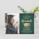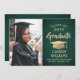 Verkünden Sie eine High School oder Uni-Abschluß und laden Sie Familie und Freunde zu feiern mit maßgeschneiderten Foto grün und Gold Party Einladungen. Das Bild und die Formulierung sind einfach zu personalisieren und die Farben lassen sich mit dem Zazzle Design Tool leicht ändern. Diese Vorlage zum Herunterladen ist als eine Kombination aus Ankündigungskarte und Party Einladung, die mit allen Details Ihrer Wahl, wie Eltern-Namen, besondere Ehren, Abschluss-Titel, Lieblings-inspirierendes Zitat, die Zukunft des Absolventen oder neue Adresse, angepasst werden können. Das Design zeichnet sich durch einen dunkelgrünen Hintergrund, Imitat-Folie Mörtel-Kappe, elegante moderne Kalligraphie, klassische Vintage Typografie und ein beliebtes Foto aus, wie ein Seniorenbild oder ein Bild aus der Anlaufzeremonie. Bitte beachten Sie, dass Gold farblich gedruckt ist, nicht metallische Folie. Diese bedruckbare Abschluss-Karte ist eine stilvolle Möglichkeit, ein besonderes Fest für den Tag anzukündigen. Herzlichen Glückwunsch an den Absolventen!