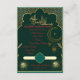 Vervollständigen Sie Ihre islamische Hochzeits-Papeterie mit dieser eleganten grünen und goldenen muslimischen Beilagekarte. Entworfen mit einem luxuriösen smaragdgrünen Hintergrund und komplizierten goldenen Arabesken-Mustern, ergänzt diese Detailkarte Ihre Nikah- oder Walima-Einladung perfekt.