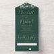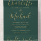 Alles in einer modernen minimalistischen Hochzeitseinladung mit hübschen Streichellichtern und eleganten goldenen Signatur-Skriptnamen und Monogramm-Initialen auf smaragdgrünem Hintergrund. Die Einladung enthält eine perforierte RSVP-Karte. Entwickelt von Thisisnotme©