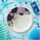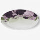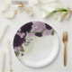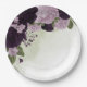 Lila- und Pflaumenblumen, grüne Blätter, botanische Papierplatte