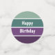 Ein grünes und lila, horizontal gestreiftes Muster und der Text: Happy Birthday. Sie können auf Personalisieren klicken und den Text bearbeiten. Schreiben Sie zwei Wörter in einer Zeile.