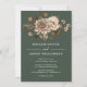 Elegante Hochzeitseinladungen mit Bohobarossenfloralen in Elfenbeintönen und tiefbraunen Tönen auf dunkelgrünem Hintergrund. Einfaches Textlayout mit hübschem Blumenkopf. Ideal für eine Hochzeit im Herbst oder für eine Hochzeit mit einer Farbpalette im Juwelenton.