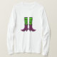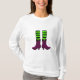 Dieses lustige Shirt hat Hexenbeine. Sie trägt schwarz-grün gestreifte Socken und natürlich ihre gruseligen lila glitterigen Stiefel. Es gibt auch ein cooles Paar koordinierender Leggings in unserem Shop, das Sie hier finden können: https://www.zazzle.com/green_and_black_striped_halloween_witch_leggings-256731734855858301
