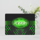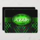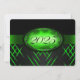 Grün und Schwarz Abschluss mit hellgrünen Streifen und einem grünen Band, das das Jahr des Abschlusses zeigt. Die Kartenrückseite ist schwarz mit hellgrünem Schriftart, damit die Abschlussankündigungen ausgefüllt werden können.