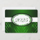 Grün-Weiß Abschluss mit hellgrünen Streifen und einem weißen Streifen, der das Jahr des Abschlusses zeigt. Die Rückseite der Karte ist grün mit weißem Schriftart, damit die Leute die Abschlussankündigungen ausfüllen können.
