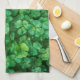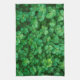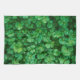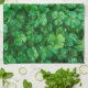 Ein Küchentuch mit einem Feld von üppig grünen Kleeblatt Blätter. Diese niedlichen kleinen Pflanze haben kleine Wassertropfen, die ihnen einen neuen Frühlingsstil verleihen.