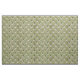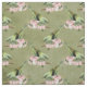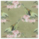 Schöne grüne und gelbe Vögel sitzen auf Ästen mit hellrosa Rose auf hellgrünem Hintergrund.