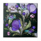 Grüne Vögel und violette Blumen aus Glas Fliese