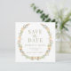 Elegante rustikale grüne Blätter mit warmen Vanille blühenden Boho Hochzeit Speichern Sie das Date Foto Einladung.