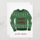 Senden Sie Ihre Urlaubssegmente mit einer Touch von Spaß und Wärme mit unserer Green Warm Wwünscht Ugly Sweater Weihnachtskarte. Diese Karte bietet einen lustigen und festlichen grünen Pullover mit reizenden Kiefern. Im Zentrum des Pullovers steht die Phrase "Warme Wünsche", die wunderschön in einer bordeauxfarbenen Farbe geschrieben ist und Ihrem Urlaubsjubiläum eine herzliche Botschaft verleiht. Unterhalb des Pullovers befindet sich eine anpassbare Zeile, in der Sie Ihren Familiennamen hinzufügen können, was ihn zu einem personalisierten und einzigartigen Gruß für Freunde und Lieben macht. Ideal für diejenigen, die den skurrilen und unterhaltsamen Aspekt der Ferienzeit Liebe haben, wird diese Karte sicherlich jedem ein Lächeln ins Gesicht bringen. Bestellen Sie noch heute Ihre personalisierte Green Warme Wwünscht Ugly Sweater Weihnachtskarte und vermitteln Sie noch heute Weihnachten etwas Freude!