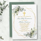 Elegante Watercolor Grüne Erste Heilige Kommunion Einladung beinhaltet Aquarellfarben Eukalyptus Blätter und andere schöne botanische Grünpflanzen. Gold Cross. Legen Sie die Farbe grün zurück.