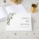 Dieses elegante Gästebuch mit grünem Aquarell, eukalyptusblütenblättern und individuellem Text würde Ihre Hochzeitsfeier wunderbar ergänzen. Fügen Sie einfach Ihre eigenen Daten hinzu, indem Sie auf die Option "Personalisieren" klicken.