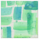 Ein hübscher grüner Stoff mit einem abstrakten Ziegelmuster in verschiedenen grünen und blauen Aquarelltönen mit Spatter und Farbpunkten für Wirkung. Schönes, einzigartiges Material für Kleidung, Kunsthandwerk oder Wohngestaltung!