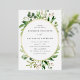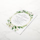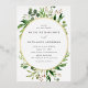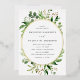 Unsere Watercolor Greenery Hochzeitseinladung zeigt Ihre Hochzeitsdetails, umrahmt von gemalten Aquarellfolien in lebhaften Frühlingshöhen und Moosgrün mit einem ovalen Rahmen aus Goldfolie. Die stilvollen botanischen Hochzeitsfeiern sind ideal für Frühjahr- und Sommerhochzeiten.