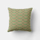 Dieses Kissen hat ein Boho Design von grün und orange Wellen auf einem Feld von hellgrün.