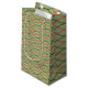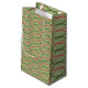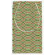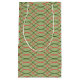 Diese Geschenktasche hat ein Boho Design von grün und orange Wellen auf einem Feld von hellgrün.