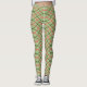 Diese Leggings haben ein Boho-Design von grün und orange Wellen auf einem Feld von hellgrün.