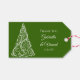 Vielen Dank für Ihre Hochzeitsgäste, die Teil Ihrer Nuptien sind, wenn Sie den hübschen Grünen Weihnachtsbaum Winter Wedding Fvor Tag an ihre Gastgeschenk Hochzeit anhängen. Passen Sie sie mit den persönlichen Namen der Braut, Bräutigam und Heiratsdatum an. Ändern Sie den Text oder den Schriftart, um Ihre Brautbedürfnisse zu Anzug. Diese eleganten wintery Hochzeitstipps sind mit einem aufwändigen weißen Weihnachtsbaumdesign mit grünem Hintergrund ausgestattet. Ideal für Paare, die ein klassisches Winters- oder Weihnachtsfest planen.