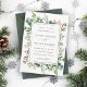 Diese Weihnachtshochzeit lädt Sie ein zu bemalten Aquarellbeeren, Kiefernästen, Eukalyptus, grünen Blätter und einem grünen rechteckigen Rahmen mit einem grünen Hintergrund auf der Rückseite. Für eine weiter gehende Anpassung dieses Designs klicken Sie bitte auf den Link "Weitere Anpassung". Matching-Elemente sind ebenfalls verfügbar.