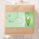 Das Design der Weihnachtskartenumschläge ist ein grünes, individuelles Geschenketikett. © TDSwhite
