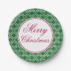 Ein lebendiges Grünmuster schmückt diese festlichen Weihnachtszeitung-Teller. Diese Teller sind ideal für Weihnachten, Weihnachts-Abendessen, ein Weihnachtsfest, Feiertag, Party, Open House, Cookie-Austausch, Cookie-Swap, Schule, Kirche, etc... Das Design ist aus der Originalkunst.