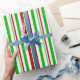 Grüne, weiße, rot-farbene Weihnachtsschmuck-Linien Geschenkpapier