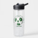 Diese Mannschaft farbenfroh zum Thema Fußball ist für Mädchen oder Jungen geeignet und zeigt das realistische Bild einer Fußball-Flasche, die grün und weiß ist, auf der man das Monogramm oder den Varsity-Buchstaben des Athleten personalisieren kann - den Schulnamen oder Clubnamen, der den Fußball umrundet, den Namen des Athleten und die Trikotnummer auf den Flaschenseite - von katz_d_zynes