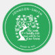 Personalisieren Sie Ihre Daten mit Familienname und Datum Ihrer Wiedersehen oder gewollt Text. Das Design enthält einen Stammbaum, den Familiennamen und das Datum der Wiedersehen auf grünem Hintergrund und ein weiße Schrift. Das Zitat ist familienorientiert und sagt, dass die Wurzeln eines Stammbaumes mit der Liebe von zwei Herzen begann. Diese sind ideal für Pakete und Umschläge.