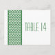 Chic und moderne Zickzack Grenz-Tischnummer Postcard mit einem Zickzack Muster in dunkelgrün und weiß. Dieses stilvolle Design Set den Ton für eine elegante Hochzeit. Einfach anzupassen, fügen Sie einfach die passende Tischnummer(en) in das Textfeld ein. Klicken Sie auf "Anpassen", um weitere Personalisierungsoptionen zu erhalten.