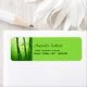 Ein üppiges smaragdgrünes Bild von Bambusstalks mit langen, zarten Blätter und hellblauen Barken im Hintergrund.