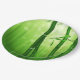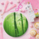 Grüner Bambus mit blassfarbenen Bokeh-Lichtern hin Pappteller
