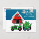 Ein roter Traktor, der immergrüne Bäume holt, macht eine hübsche Urlaubskarte.