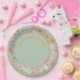 Grüner, blumenfarbener Wasserfarbenorange Pappteller
