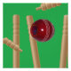 Abgebildet ist ein Cricket-Ball, der Cricket-Stumps trifft
