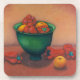 Untersetzer mit zeitgenössischer modernistischer Kunst der grünen Schüssel mit Obst und Gemüse.