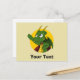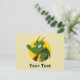 Personalisierte Postkarte mit Abbildung eines niedlichen kleinen, grünen, fliegenden Drachen, in gelben Kreisen, niedliche Fantasie / Märchen-Design für Kinder von Maxi Harmony