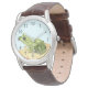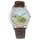 Eine Aquarellmalerei mit einem niedlichen kleinen grünen Frosch schmückt diese Uhr!