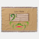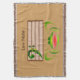 Notenblätter mit einem Bullenfrosch als ganzer niedriger Note und einem Kaulquappen als Basskleber. Die Farben sind in Grüntöne und Gelb für die Frösche und eine verschwommene braun für die Blechlinien.