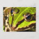 Nah aufwärts eines grünen Froschkopfes, der Augen, Nasenlöcher und Mund zeigt.
