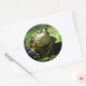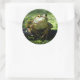 Grüner Frosch schlägt eine Pose auf dem Schlauch Runder Aufkleber