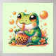Grüner Frosch trinkt Orange Boba Bubble Tee Poster