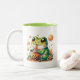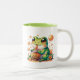 Grüner Frosch trinkt Orange Boba Bubble Tee Zweifarbige Tasse