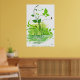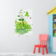Dekorative Vektorgestaltung von grünen Pflanze mit Rose, neben einem kleinen Wasserstrom. Dieses grüne und weiße Design verleiht der Innendekoration der Wände einen frischen Touch. Anpassbare Produkte.