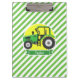 Grüner, gelber Bauerntraktor; grün und weiß Klemmbrett