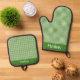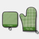 Grüner Gingham Ofenhandschuh & Topflappen-Set