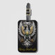 Eine detaillierte Abbildung eines Adlers mit einem Schild mit aufwändigen Schnitten, gerendert in metallischen Tönen.