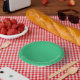 grüner Hintergrund mit weißem Rand Pappteller