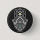Schutz der Hamza Hand mit grünem Auge - weiß auf schwarz. Kürzere Version. Schöne, scharfe Hamza Hand ähnelt Tätowierung. Lieblicher Knopf mit Hamza Hand.