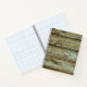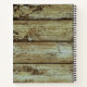 Verblasste Holzplanken mit braunem, grünem Farbton. Wählen Sie aus Sketchbook, Bullet Journal, Checkliste, Graphen Papier, Rezept Buch, oder Zeilen in verschiedenen Breiten und Farben. Wählen Sie auch eine Wirbelsäule, um Ihr Notebook noch individueller zu gestalten.