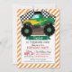 Grüner Monsterlruck, karierte Flagge; orangefarben Einladung